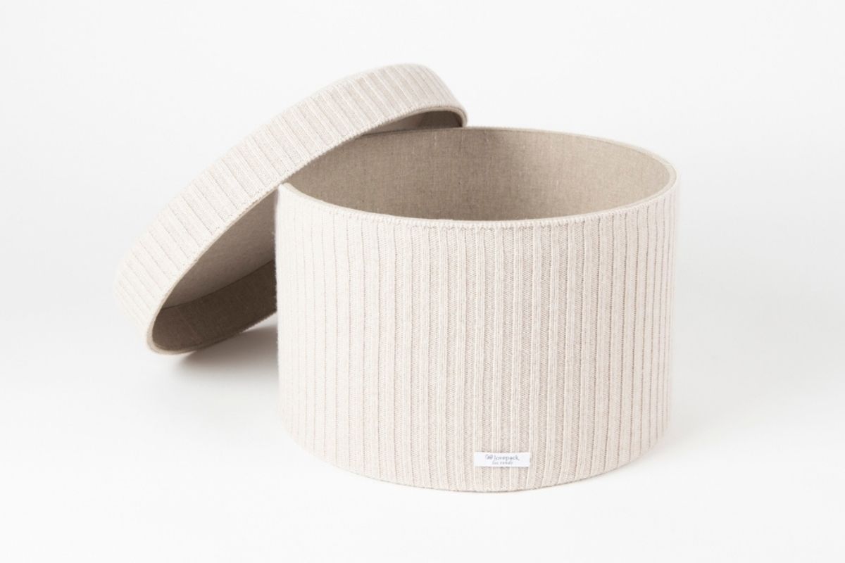 “Les Ronds” are round fabric hat boxes that transform the concept of packaging into a design object meant to last over time.