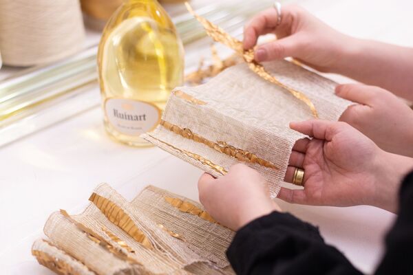 Nell’ambito del programma Ruinart Studio, la maison di champagne di proprietà di LVMH ha dato carta bianca all’artista del vetro Lucile Viaud e alla designer tessile Aurélia Leblanc per immaginare una seconda vita per le bottiglie e i tappi del brand. Il risultato? Un sontuoso “tessuto” che fonde vetro e materiale tessile, sospeso presso la sede Ruinart di 4 rue des Crayères a Reims.
