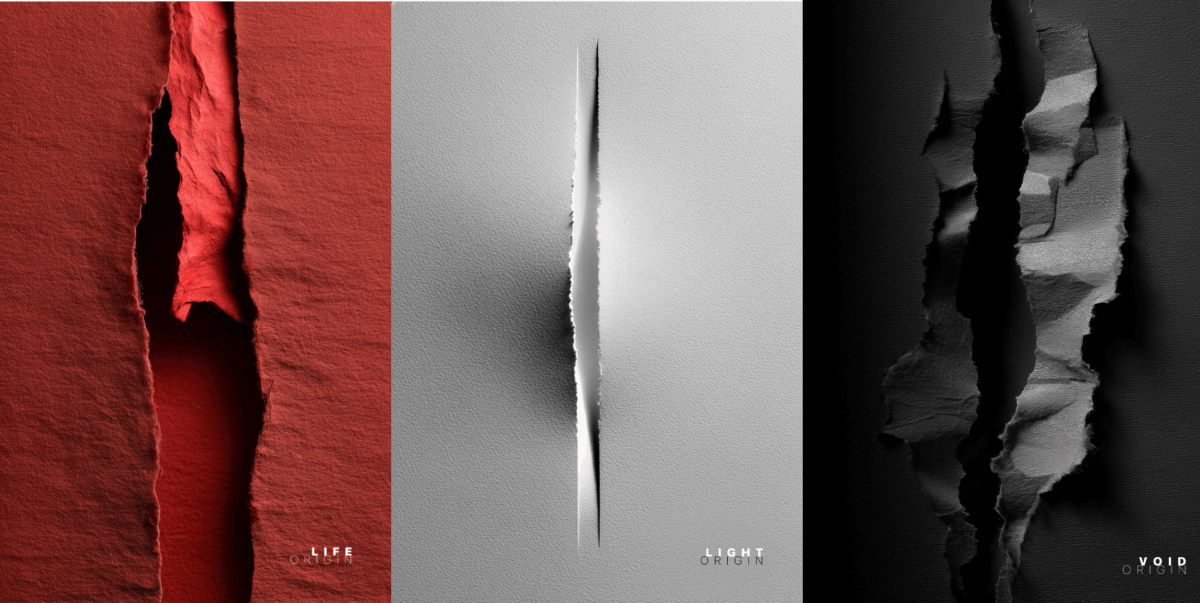 Le opere esplorano la carta come superficie originaria, dove strappi e pieghe trasformano il foglio in spazio, luce e materia. In ogni trittico, il bianco suggerisce nascita e possibilità, il rosso evoca energia, crescita e trasformazione, mentre il nero apre al vuoto e alla dissoluzione. Attraverso questo gesto creativo, la carta smette di essere semplice supporto e diventa luogo di nascita e metamorfosi, raccontando diverse forme di origine e invitando lo spettatore a un’esperienza visiva immersiva e poetica.