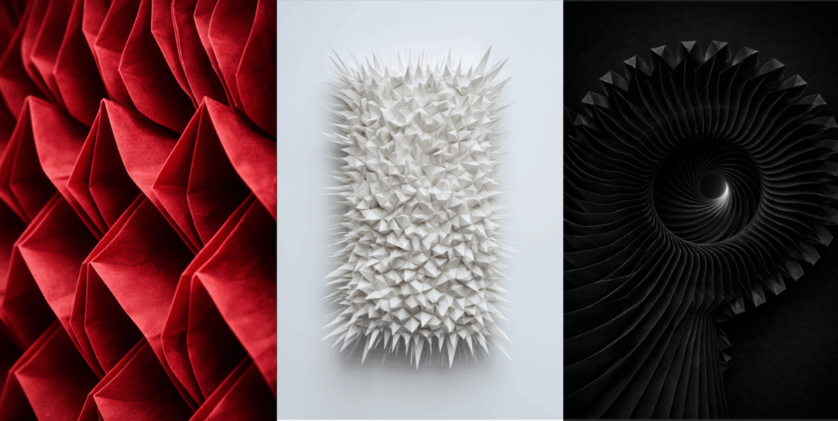 Le opere trasformano la carta in spazio e materia: nel bianco la piega si apre come respiro, nel nero cede mostrando assenza e vulnerabilità, nel rosso si concentra in energia e forza generativa. Un trittico che racconta nascita, metamorfosi e memoria.