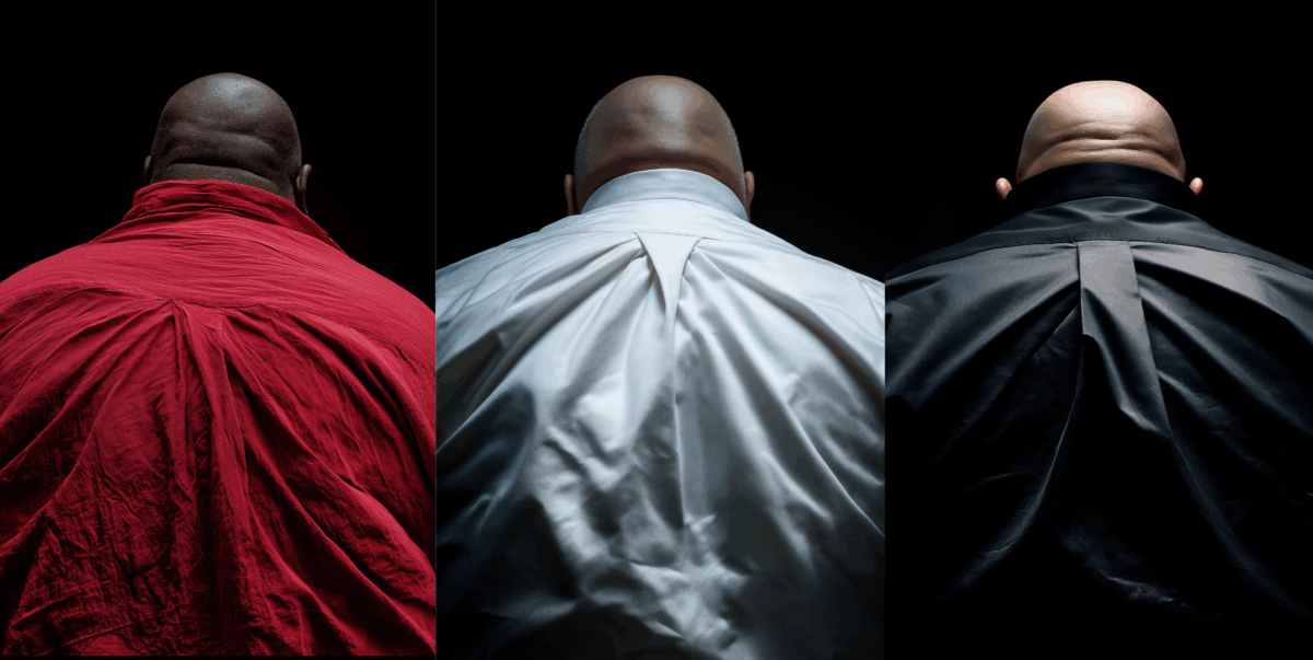 The Back Trilogy si dispiega attraverso tre ritratti di schiena concepiti come atti di origami: superfici plissettate come Folded e corpi umani come Realities. In una cultura del branding frontale e dello spettacolo ingegnerizzato, la schiena si sottrae allo sguardo del consumatore, piegando l’identità nella pelle e nel tessuto. I volumi curvi si oppongono alla rigidità dell’esposizione, mentre la piega centrale diventa cucitura e incisione, punto in cui immagine, corpo e packaging convergono. La testa rasata riduce la figura alla struttura: costruita, messa in scena, esposta.