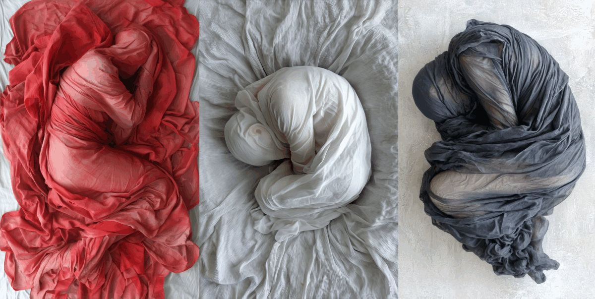Body in Fabric è un’esplorazione visiva del rapporto tra il corpo umano e il tessuto, in cui il corpo viene trasformato in una forma morbida, astratta e scultorea. Completamente avvolta nella stoffa, la figura perde la propria identità e diventa una superficie definita da pieghe, tensioni e volumi.