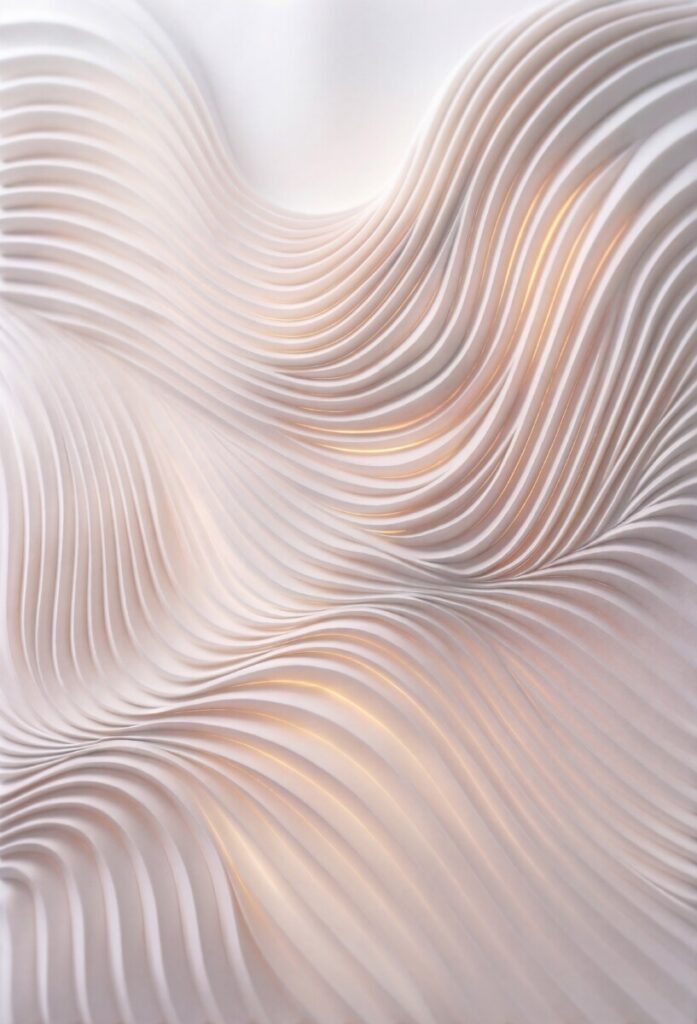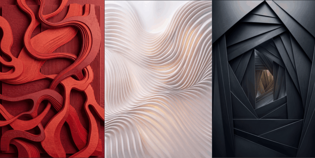 “Trajectory of an Impulse” scorre dalla purezza di “White Flow” — un silenzio visivo di pieghe morbide — verso la forza di “Pulsation”. In questa densità rossa, un modulo verticale incontra creste fluide come un improvviso crescendo. Il ciclo si conclude con “Shadow and Limit”, dove le curve organiche cedono il passo ad architetture rigide. Il nero assorbe tutta la luce attraverso spostamenti tettonici e spigoli netti. Questo vortice segna il punto di cristallizzazione, dove il ritmo del trittico raggiunge il suo limite assoluto.